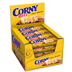 Milk chocolate (sugar, cocoa liquor, cocoa butter, powdered skimmed milk, butterfat, sunflower lecithin) 24%, baked coconut flakes 16%, glucose-fructose syrup, baked wholemeal cereal flakes (oats 11%, wheat 2%), dried cereal grains (flour 8%, sugar, rice flour 1%, corn flour 1%, malted barley, salt, caramelised sugar syrup), glucose syrup, brown sugar, vegetable fat, corn flakes (corn 2%, sugar, salt, malt barley), salt, stabilisers: glycerol, emulsifiers: sunflower lecithin, natural flavourings.