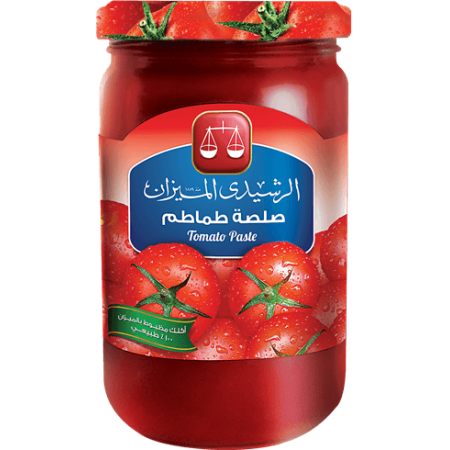 El Rashidi El Mizan tomato paste is made from fresh ripe tomatoes. Add El Rashidi El Mizan tomato paste to your favorite recipes and dishes to enrich the flavors of your sauces, pasta, or pizza. El Rashidi El Mizan carefully fresh tomatoes guarantee the taste and quality of the tomato paste that enhances the cooking experience.